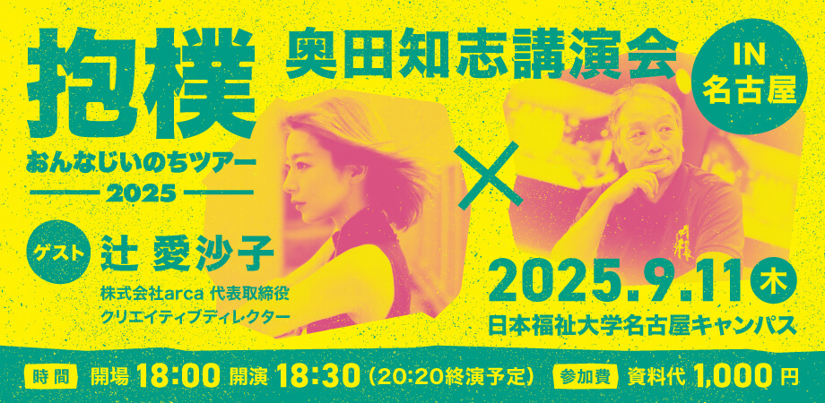 「おんなじいのちツアー2025」と題して、抱樸理事長・奥田知志が全国各地を巡る企画の名古屋開催講演会のご案内です。