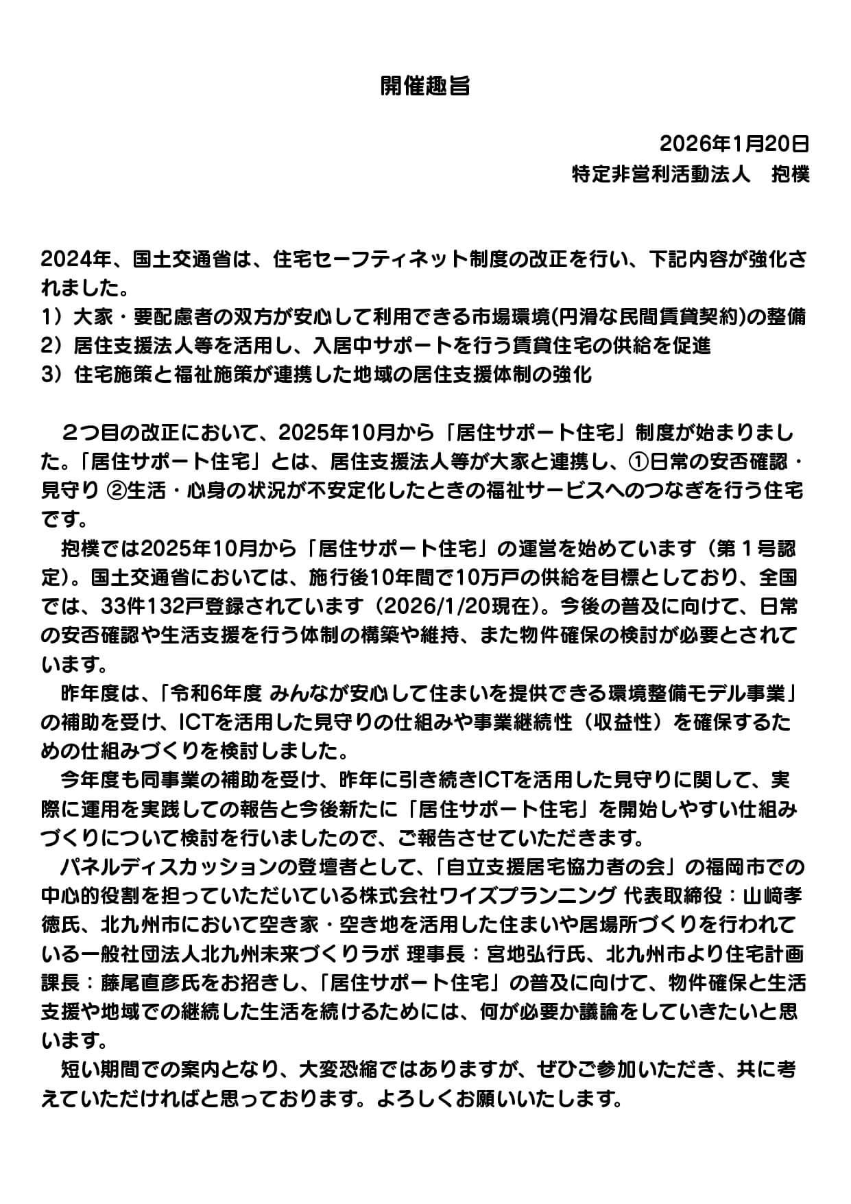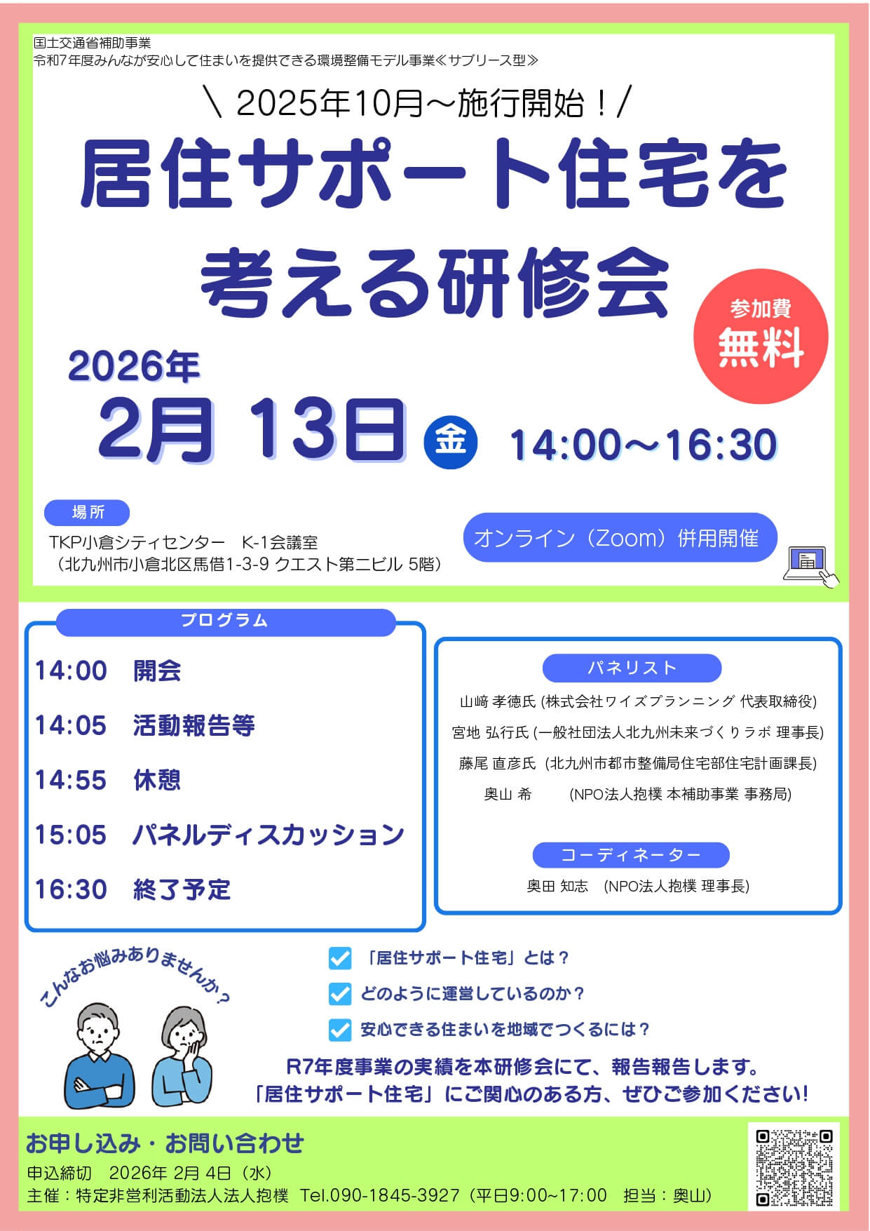 2月13日(金)「居住サポート住宅を考える研修会」を開催します