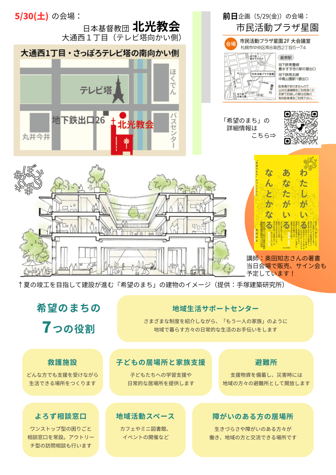 ※当日、会場にて、奥田知志著『わたしがいる あなたがいる なんとかなる「希望のまち」のつくりかた』の販売、サイン会を予定しています。(すでにご購入いただいている書籍をお持ちいただいた場合も、サインいたします。)